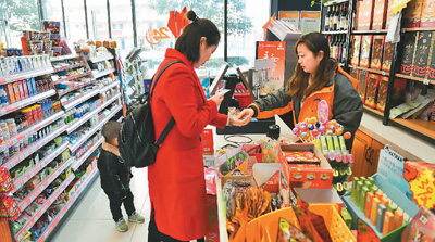 西安慧灵公益超市的店员在给顾客找零。 |