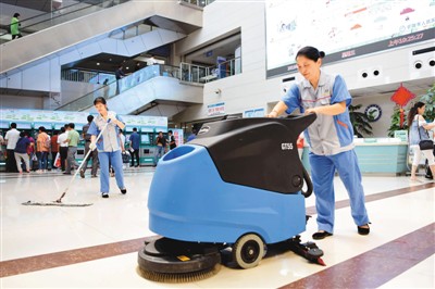 两位清洁工在安徽省铜陵市人力资源和社会保障局开发的市人民医院公益性岗位上工作。 |