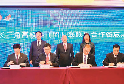 当天,三省一市侨联相关负责人签订长三角高校侨(留)联联盟合作备忘录,20所高校侨(留)联有关负责人上台按下联盟成立启动手印。这标志着孕育近一年的长三角高校侨(留)联联盟正式站在了助推长三角一体化的浪潮之上。