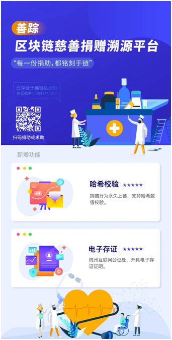 2月29日,由中国雄安集团数字城市公司和杭州趣链科技有限公司共同建设的善踪平台完成迭代更新。据悉,本次更新围绕公证功能展开,进入最新版善踪平台,捐赠方不仅能完成捐赠信息上链,还能获得平台第三方权威机构——杭州互联网公证处出具的存证证明。专业人士分析认为,功能的升级,不仅是对捐赠双方权益的保障,更是慈善捐赠体系治理能力的提升。