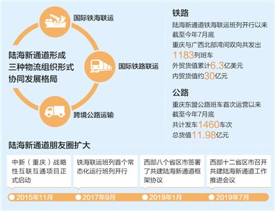今年1月,重庆、广西、贵州、甘肃、青海、新疆、云南、宁夏等西部八个省区市签署了共建陆海新通道框架协议。陆海新通道发展势头的强劲,用一组数字足以说明:重庆往返广西北部湾的铁海联运班列,从2017年的48列,迅猛发展到2018年的609列,今年1—7月达到526列,同比增长139%。