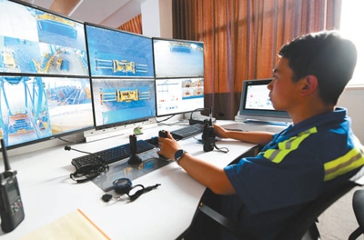 现场监控室内,远程监控员在监控现场生产作业情况。 |