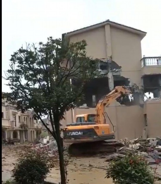 违法别墅正在拆除。视频截图
