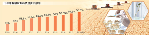 农业逐步走上高质量发展道路。到2017年底,我国农药使用量已连续3年负增长,化肥使用量已实现零增长,提前3年实现到2020年化肥、农药使用量零增长的目标。加强草原生态保护补助奖励、畜禽粪污资源化处理、地膜清洁生产技术推广、地下水超采综合治理以及重金属污染耕地综合治理,农业资源生态保护和面源污染防治取得重大进展。2018年,我国新建高标准农田8200万亩,发展高效节水灌溉面积超过2000万亩;耕地轮作休耕试点超过3000万亩;农业科技进步贡献率达到58.3%。农业正在从重视数量向重视质量发展,发展现代农业的物质技术基础不断夯实。
