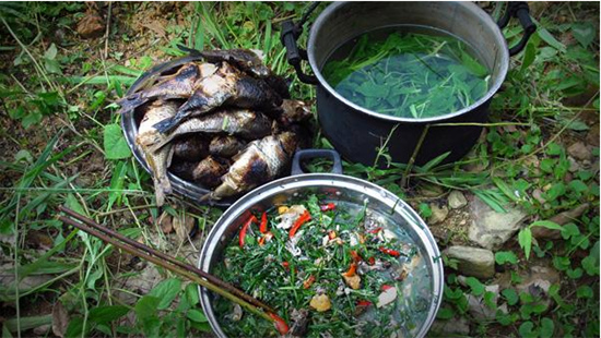 这时,若有过路的行人,不论民族,不分远近,都被相邀“入席”,共同进餐。主人先给客人敬上一碗酒,夹上一条鱼,话语不停地催促客人快喝快吃,不按资排辈与客人交杯痛饮,一同享受苗家烧鱼野炊的快乐。