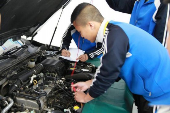 阜平县职业教育学校学生正在学习车辆维修技术