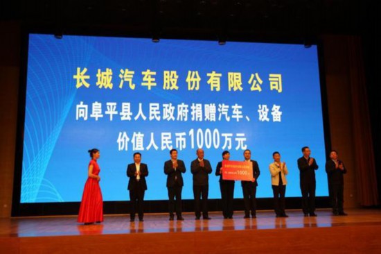 长城汽车向阜平县捐赠价值人民币1000万元的汽车及设备