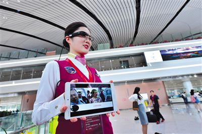 值得一提的是,大兴国际机场还用上了人脸识别技术。东航在大兴机场推出CUSS自助值机设备,购买东航机票的旅客通过设备完成人脸识别后,站在显示航班信息的大屏幕前,将被自动抓取人脸信息,屏显将显示该旅客的航班信息,如航班号、机型、登机口、目的地天气、登机口关闭时间、步行至登机口的大致时间等。