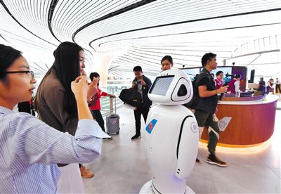 在北京大兴国际机场航站楼内,有一批特殊的“服务员”将为旅客提供服务。它们都是机器人,分别为10台虚拟人像机器人和10台实体机器人。机器人将为旅客提供接待迎宾、信息查询、路径指引、业务咨询、音视频播放等相关服务。