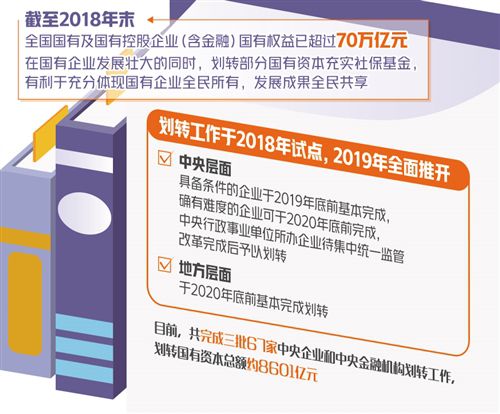 根据全国国有企业决算数据,截至2018年末,全国国有及国有控股企业(含金融)国有权益已超过70万亿元。“在国有企业发展壮大的同时,划转部分国有资本充实社保基金,有利于充分体现国有企业全民所有,发展成果全民共享。”刘昆表示。