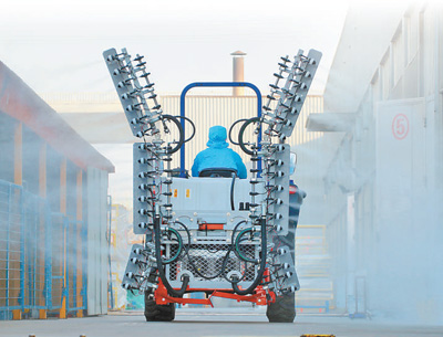 2月9日,为准备复工复产,山东烟台杰瑞集团利用企业自主研发的静电喷雾设备对厂区展开全面消毒。 |