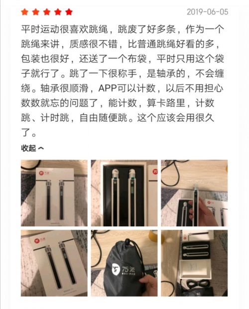 还有颜控用户表示满足,在这个看颜值的时代,一款优秀的智能跳绳自然不能落后,75派智能跳绳颜值秒杀传统跳绳,高雅的材质,舒适的手感,自用或送礼都倍儿有面。