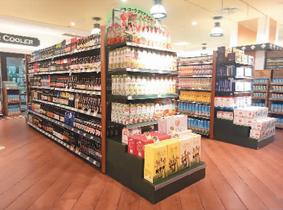 位于北京SKP的华联精品超市内,整齐摆放着各种进口酒水和饮料。 |