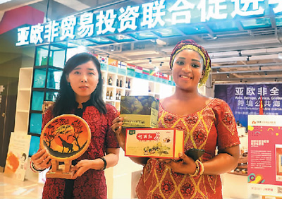 中外商家在上海绿地全球商品贸易港里展示进口商品。 |