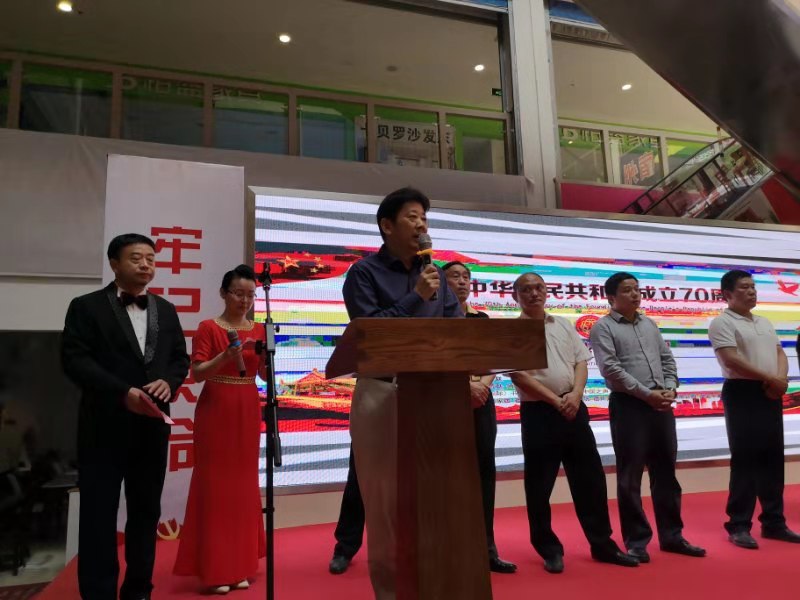 为庆祝中华人民共和国成立70周年,9月28日上午,在安徽省归国华侨联合会指导下;由宿州市归国华侨联合会、宿州市埇桥区归国华侨联合会在宿州(国际)书画艺术交流中心举办“庆祝中华人民共和国成立70周年”宿州侨界书画展。该中心位于白马(国际)家居东区,规模宏大,签约国内外知名艺术家300余人,此次共展出萧龙士、梅纯一、郑正、闫梓昭、薛志耘等人作品280余幅。