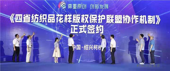 保护原创,保护花样版权。多年来,绍兴柯桥、广东佛山、江苏南通、山东潍坊四地监管部门一直精诚合作,形成了花样版权保护协作联合体。本次论坛现场,由浙江、山东、江苏、广东四省版权管理部门联合发起的《四省纺织品花样版权保护联盟协作机制》正式签约。四省联盟协作,标志着四省花样版权保护进入全面的共享共保阶段,为全国花样版权保护领域的“先河”。