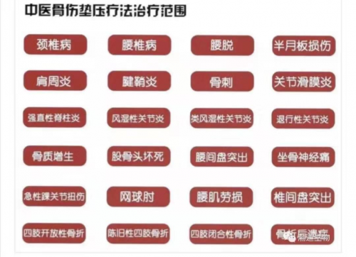 当骨伤后,骨头周围的软组织中和微细血管也同时受到损伤,使骨头及周围软组织肿胀瘀血、疼痛、功能失调;如果处理不当,容易形成慢性无菌性炎症,带来长时间的痛苦。用垫压疗法可以使骨伤部位及软组织损伤部位迅速消解疼痛。