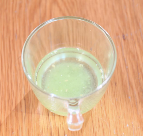 既然是餐后、零食后漱口水,我们就看看小绿瓶的清洁效果如何?零食后含漱一口小绿瓶漱口水,上下左右鼓动两腮和口腔,尽情让漱口水接触每一个齿缝,这样可以充分卷走齿间和喉中的食物残渣,大概20s左右吐出来,看下漱口后吐出来的东西: