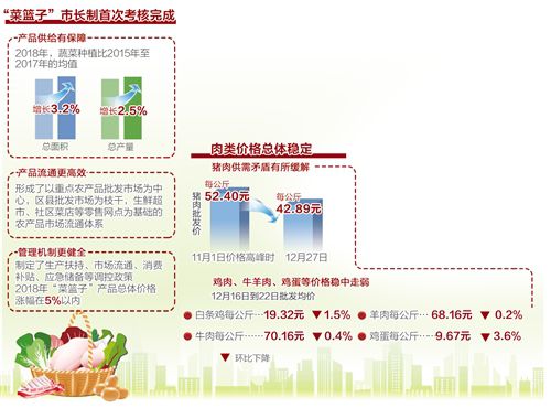 此外,“菜篮子”管理机制更健全。36个城市制定了生产扶持、市场流通、消费补贴、应急储备等调控政策,2018年“菜篮子”产品总体价格涨幅在5%以内。