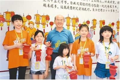 浙台青少年体验非遗文化 2019-08-06 16:17 来源:人民网-人民日报海外版 作者: 黄琪品 字号: 近日,“云水一脉·两岸一家”国学传承夏令营活动在浙江瑞安举办,来自台湾南投竹山小学的师生与瑞安当地师生一起,开展为期7天的文化寻根之旅。在此期间,两岸学子们先后参观玉海楼、利济医学堂等古迹,品尝温州传统特色小吃,聆听《弟子规》、《甲骨文》、《经典吟诵》等国学课程,体验剪纸艺术、无骨花灯制作、木活字印刷等非遗课程。两岸学子共同感受中华文化的博大精深,也结下了深厚友谊。 本次活动由温州市台办指导,瑞安市台办、教育局联合主办。图为两岸学子展示自己制作的花灯。 黄琪品摄 责任编辑: 修己 相关阅读 关键词: 复制网址 打印 收藏