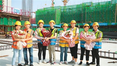 农民工夫妻在山东青岛工地上过七夕。 |