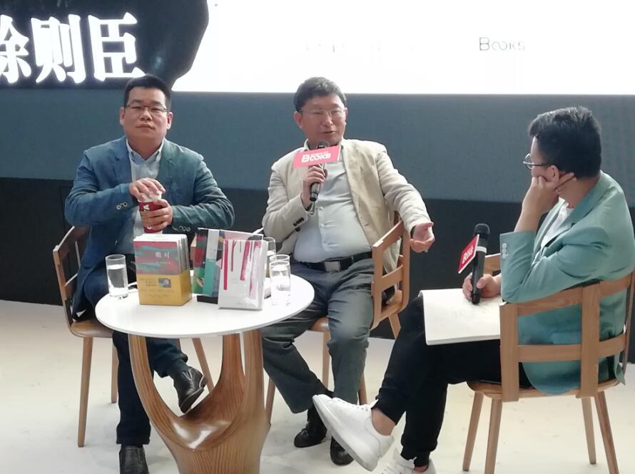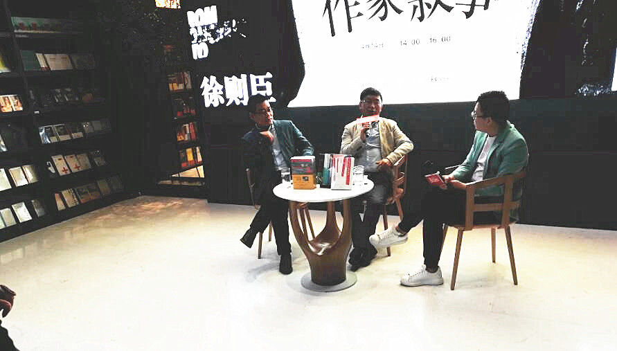 阿来(中)与徐则臣(左)在活动现场