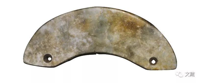 长6.6、宽1.9、厚0.5厘米。桥形璜,欠规整。两端有小圆孔。(图3)