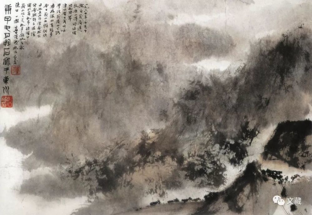 更值得一提的是,傅抱石写生前往峨眉山参观铁矿工地,感叹于技术之新奇,至乐山时与“培谦同志”谈论所见感受并提及郭沫若诗,后在重庆根据所得写成一画《峨山处处是机声》,11月27日欣然补题:“一九六〇年十月下浣,自峨眉还抵乐山,得晤培谦同志,因举沫公昔日有句云:‘梦里峨眉山下路,垂杨深处有鹃声。’今日峨山大办钢铁事业,且土洋结合,技术新奇,欲题云:‘林阴深处有机声。’培谦曰:‘峨山处处是机声’,敬记之,求沫公一粲。廿七日谨识,抱石,重庆。”后来,傅抱石邮赠郭沫若祝贺其六十八寿诞。可见,傅抱石与郭沫若之情谊交契、用心用情的确非同一般。