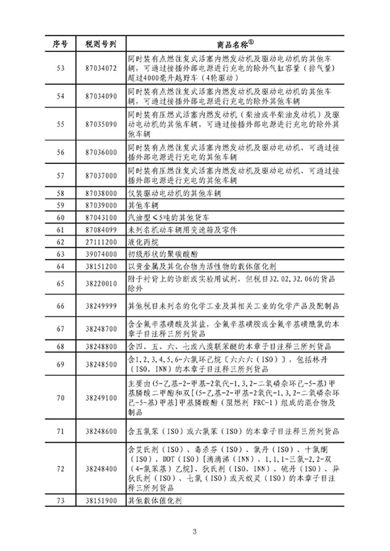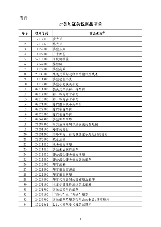 对于美国违反国际义务对中国造成的紧急情况,为捍卫中方自身合法权益,中国政府依据《中华人民共和国对外贸易法》等法律法规和国际法基本原则,将对原产于美国的大豆等农产品、汽车、化工品、飞机等进口商品对等采取加征关税措施,税率为25%,涉及2017年中国自美国进口金额约500亿美元。
