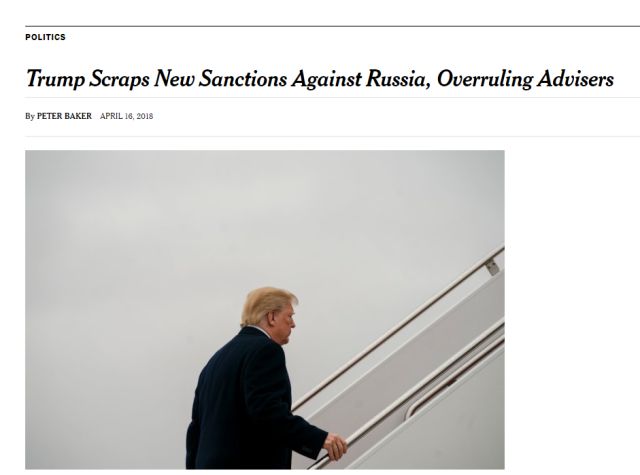 而根据《纽约时报》的报道,一位匿名的白宫内部人士也透露说,特朗普其实已经决定不再对俄罗斯追加制裁,因为俄罗斯对美国空袭叙利亚的行动除了嚷嚷两句,也并无其他。