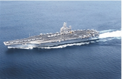图为美国海军尼米兹级航母“亚伯拉罕·林肯”号在进行综合训练单位演习。 |