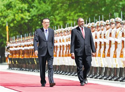 会谈前,李克强在人民大会堂东门外广场为萨尔维举行欢迎仪式。