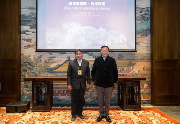 2018年2月12日上午,故宫博物院与凤凰卫视在故宫建福宫花园举办发布仪式,宣布双方共同研发的《清明上河图》高科技互动艺术展演即将完成。故宫博物院院长单霁翔与凤凰卫视董事局主席、行政总裁刘长乐出席了活动并分别致辞,故宫博物院常务副院长王亚民,凤凰卫视执行副总裁何大光等出席活动。