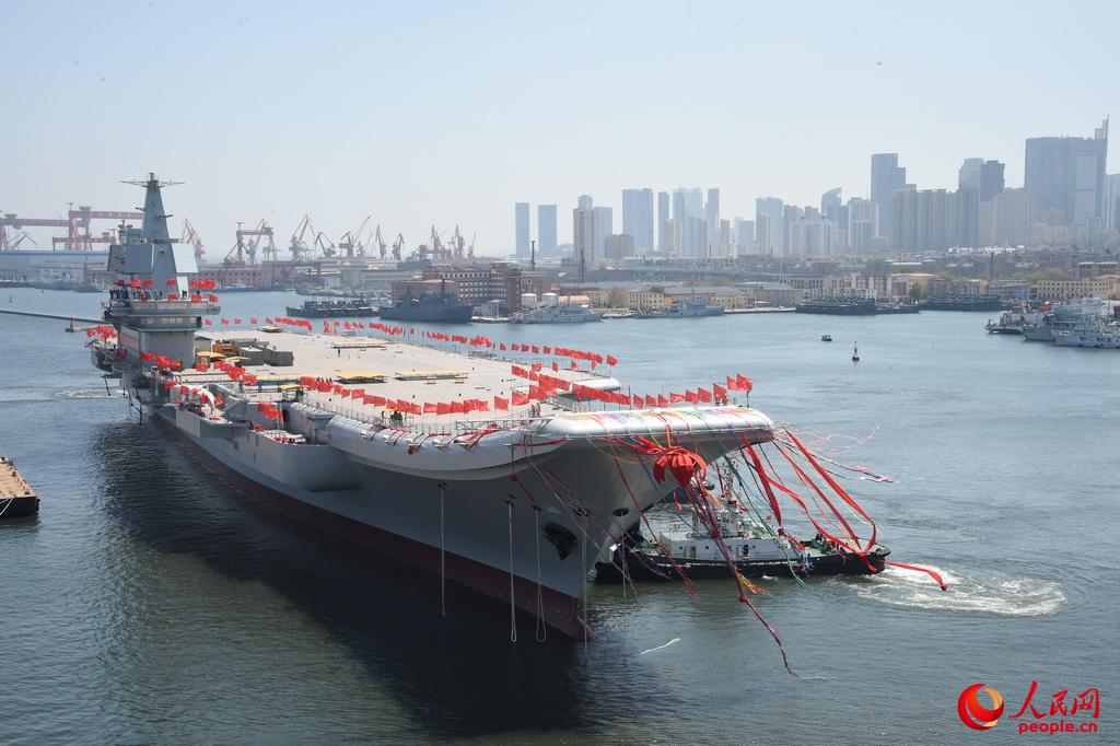 2017年4月26日上午,我国第二艘航空母舰下水仪式在中国船舶重工集团公司大连造船厂举行。