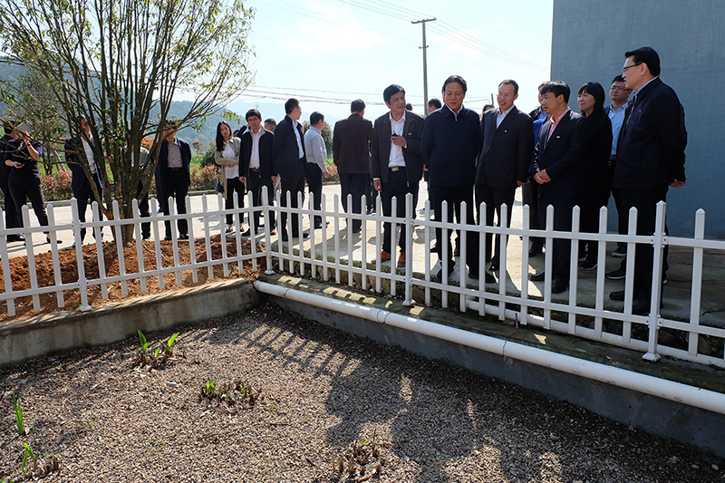 3月29日,调研组在诸暨市枫桥镇枫源村调研污水处理设施。
