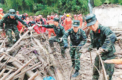 8月10日,受超强台风“利奇马”影响,浙江省永嘉县岩坦镇山早村发生山体滑坡,阻塞河流并引发决堤。 |