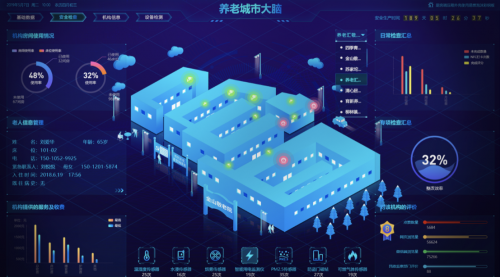 鲸数科技(北京)有限公司所搭建的智慧养老城市大脑通过在所有养老机构统一架设一张城市养老安全感知网、一个数据汇聚分析IOC平台、两个管理中心、N个养老业务应用,综合运用大数据、云计算、人工智能等技术,利用物联网智能监测识别系统,识别异常情况并及时做出预警,由事后取证向事中告警和事前预警转移,最大程度降低异常事件发生。