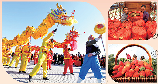 图①:甘肃省张掖甘州区靖安乡的村民们舞龙闹新春。 |