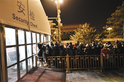 1月1日凌晨4时30分,天安门广场,市民排队进入安检处。
