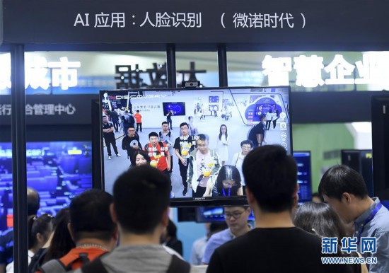 5月16日,在第三届世界智能大会智能科技展上,观众在浪潮集团展台体验人脸识别技术。新华社记者 岳月伟 摄