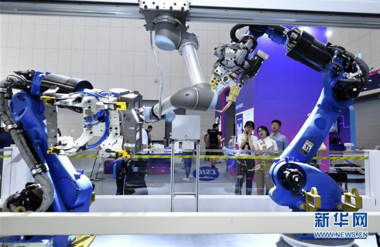 5月16日,在第三届世界智能大会智能科技展上,观众参观中船重工第707研究所展出的汽车柔性焊接检测系统。新华社记者 岳月伟 摄