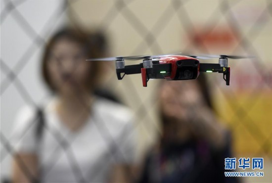 5月16日,在第三届世界智能大会智能科技展上,观众在观看无人机飞行表演。 新华社记者 岳月伟 摄