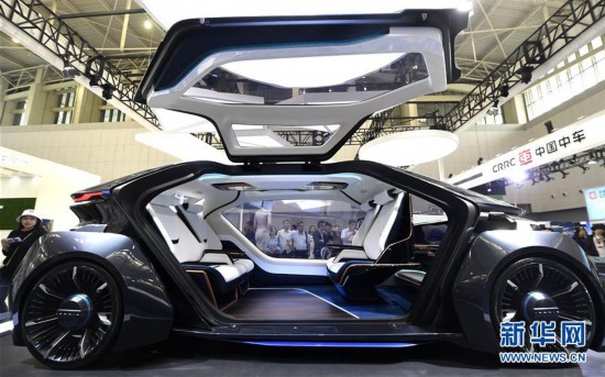 5月16日,观众在第三届世界智能大会智能科技展上参观一家企业展出的概念车。 新华社记者 岳月伟 摄