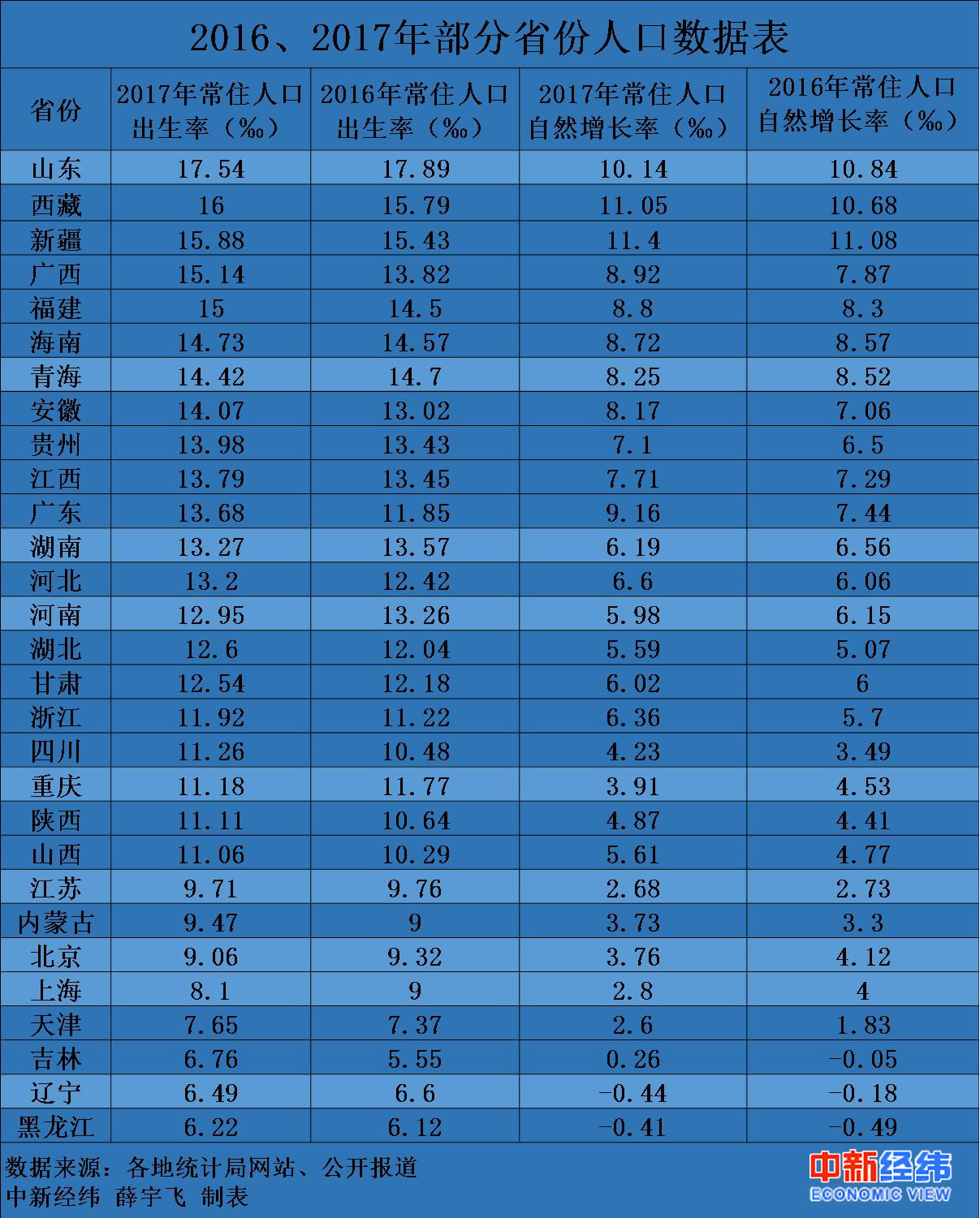 统计显示,相较于2016年,山东、河南、湖南、辽宁、青海、重庆、江苏、北京、上海9省市的人口出生率和自然增长率出现了同步下滑。