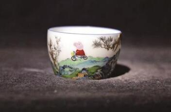 日前,一只白色瓷杯的图片被网友热传。白色通透的杯身、传统的青山绿水、还有骑着车一脸愉悦的小猪佩奇,让这只瓷杯显得十分别致。