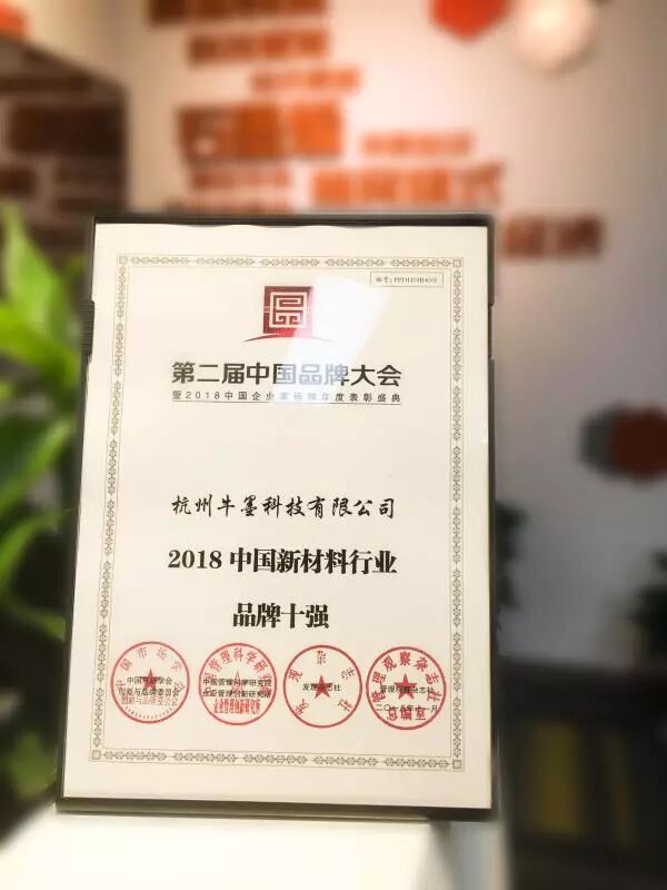 喜讯!喜讯!热烈庆祝牛墨科技荣获“2018品牌中国新材料行业品牌十强”,牛墨科技CEO渠梁(杨华东)荣获“2018品牌中国新材料行业十大企业家”称号。