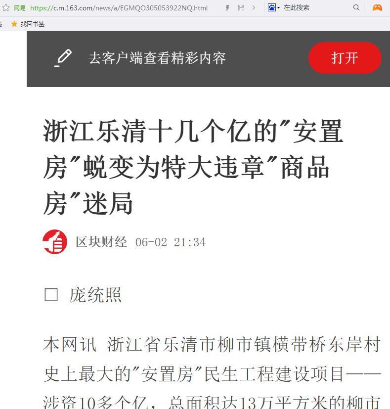 2019年4月28日《民主与法制时报》以"浙江乐清'回扣地'建房僵局难解"为题进行披露。