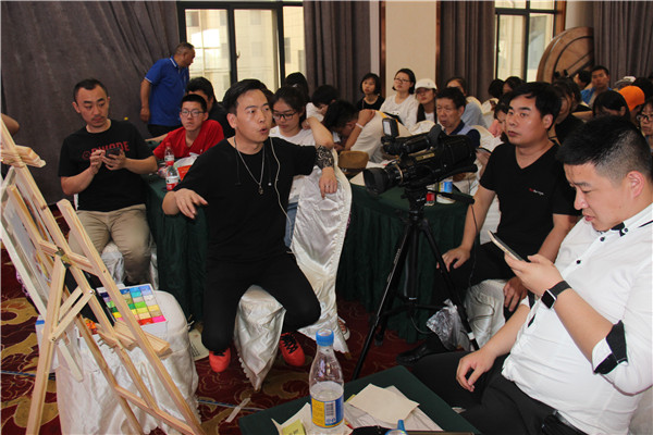 去年2月,苏州冰心文化用品有限公司河南区域经理杨坤通过朋友口碑了解到贻佳美术后登门拜访,并把情况给董事长李小福汇报。有着同样心愿和企业文化的苏州冰心董事长李小福非常喜欢与贻佳美术合作,并让公司主打产品“马蒂斯”颜料快速登录新乡,为新乡市美术界助力加油。2018年举行的胡波纹色彩讲课活动,引起了新乡市空前气氛。