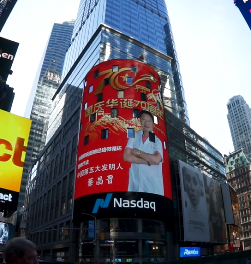 盛世华诞70周年·砥砺奋进新时代!2019年10月1日,国庆节,是中华人民共和国成立70周年纪念日,是中华人民共和国宣告成立的伟大日子,在这个举国欢庆的节日。作为中国中医药的传承者,中医药文化的坚定实践者,中国第五大发明人蔡昌晋再度荣登号称世界第一屏的纳斯达克大屏幕,与全球华人共庆新中国成立70周年! 祝愿祖国繁荣昌盛。