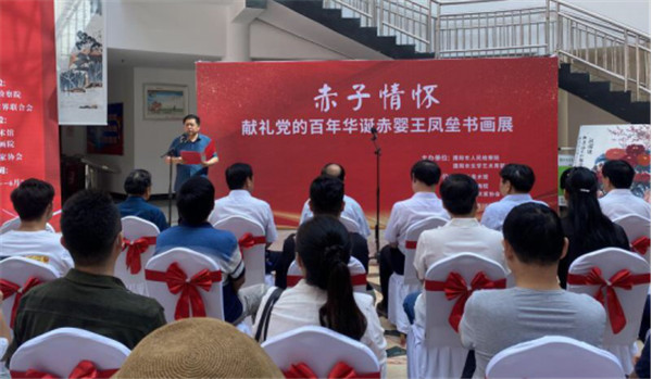 胸怀千秋伟业,恰是百年风华。6月18日上午,《赤子情怀——献礼党的百年华诞王凤垒书画展》开幕式在我市美术馆举行。本次书画展由濮阳市人民检察院、濮阳市文学艺术界联合会主办,濮阳市美术馆、濮阳市书画院、濮阳市美术家协会承办。濮阳市人大原主任徐教科、濮阳市文联主席赵雍、濮阳市委政法委政治部主任姜国涛、濮阳市人民检察院政治部主任周韶迅、濮阳市美术家协会主席和文化艺术教育协会会长薛文信等参加开幕式,濮阳市文联副主席王濮方主持开幕式。
